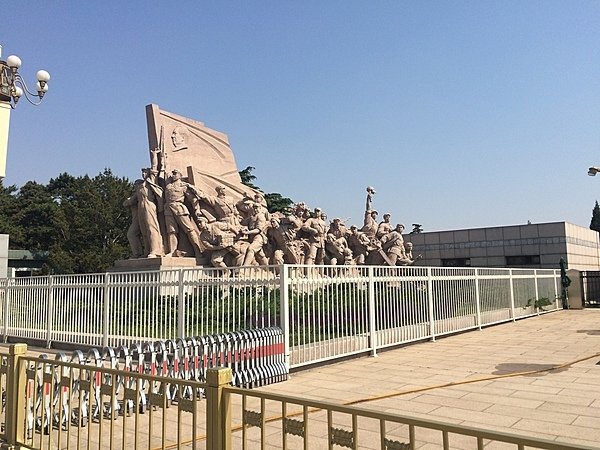 Revolutionary monument in front of Chairman Mao Zedong Mausoleum on Tiananmen Square in Beijing, China