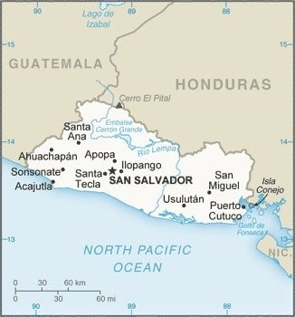 El Salvador: Central America, bordering the North Pacific Ocean, between Guatemala and Honduras