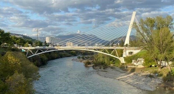 The Millennium Bridge is a key landmark in Podgorica, Montenegro's capital. The cable-stayed bridge crosses the Moraca RIver (the country's largest), measures 173 m (567 ft) long, and connects old town Podgorica with the new town. Opened on the day of Montenegro’s statehood, 13 July 2005, the structure took a year to construct and symbolizes Montenegro’s entry into the 21st century. The bridge is particularly impressive when lit at night