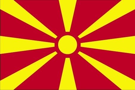 North Macedonia: a yellow sun (the Sun of Liberty) with eight broadening rays extending to the edges of the red field; the red and yellow colors have long been associated with Macedonia